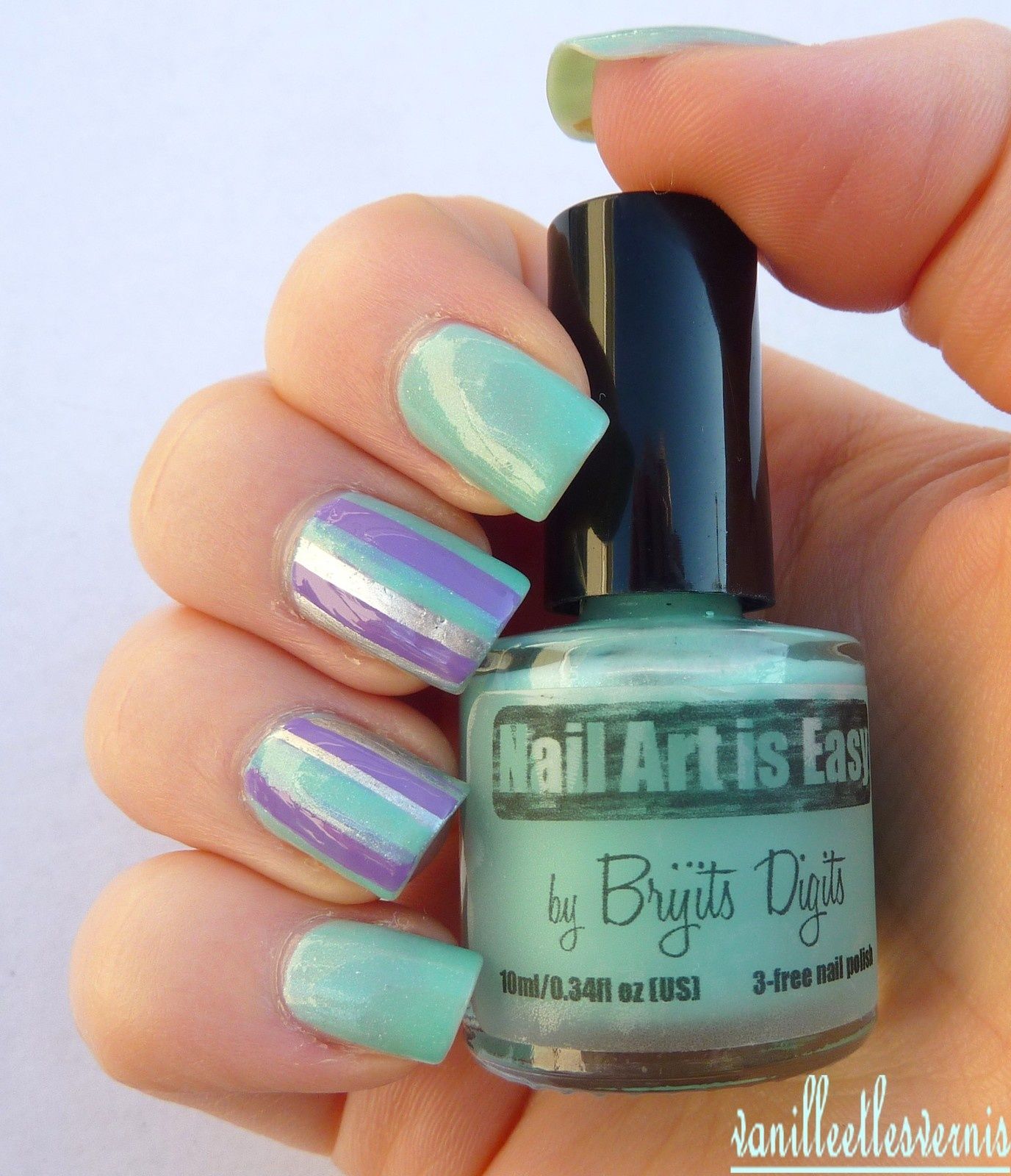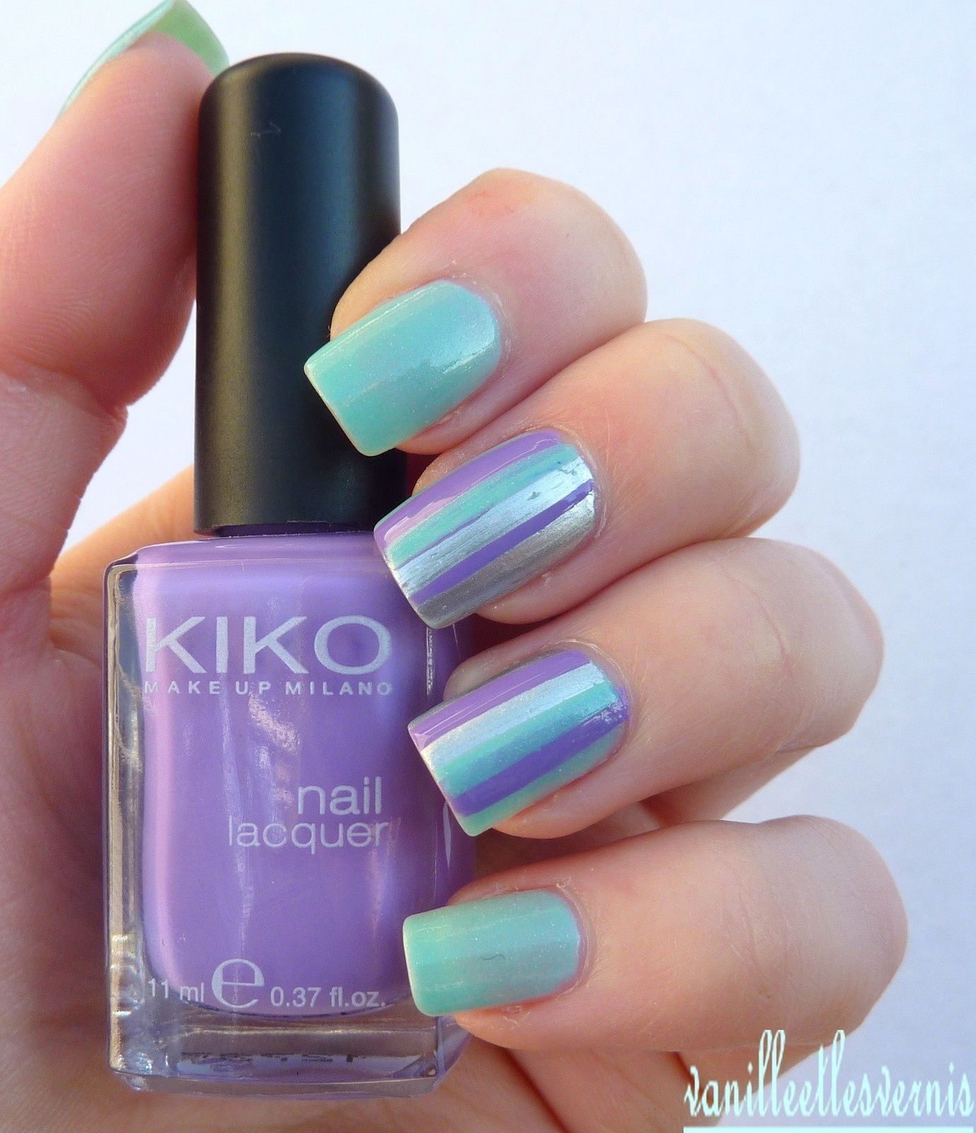 j'ai donc découpé des petits morceaux de stripping tape, que j'ai intercalée, et j'ai remplis avec mon vernis argenté le n°62 de chez LM Cosmétic et mon 331 de chez Kiko