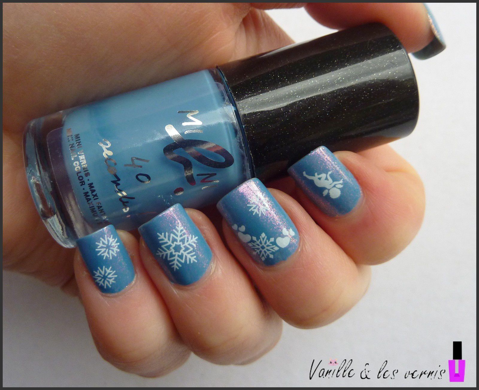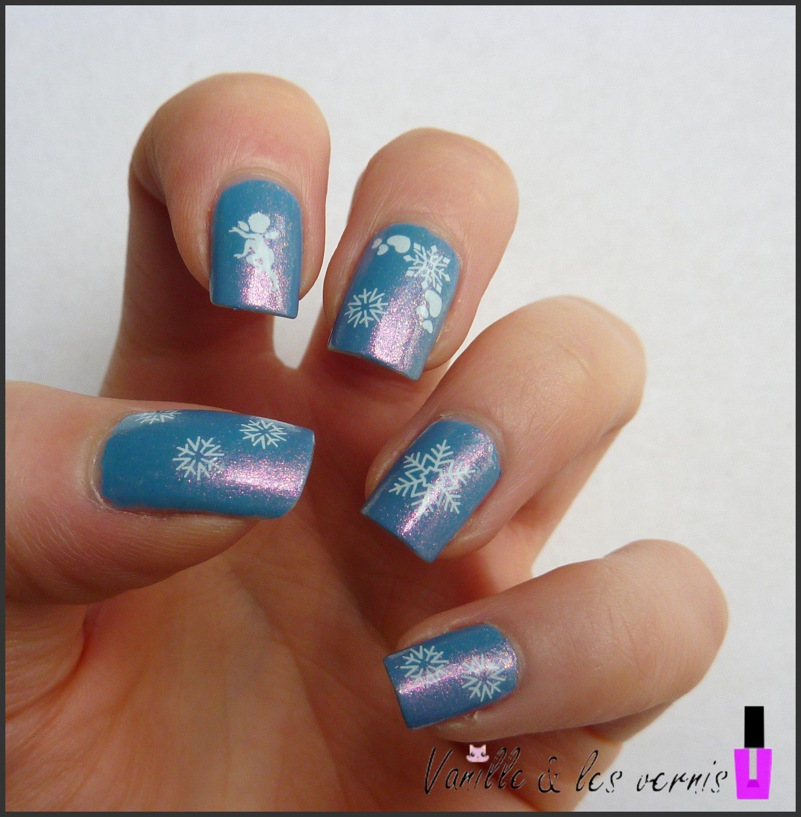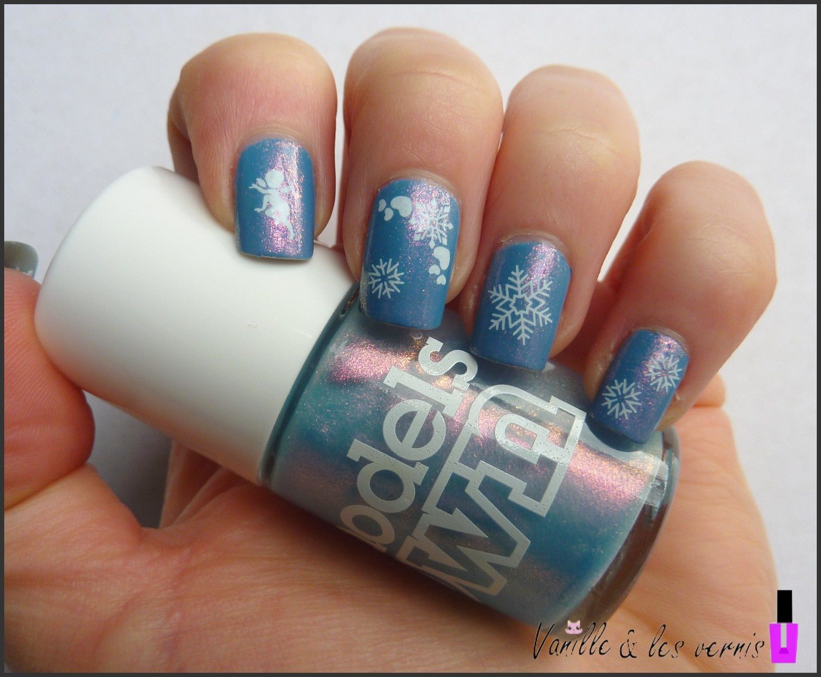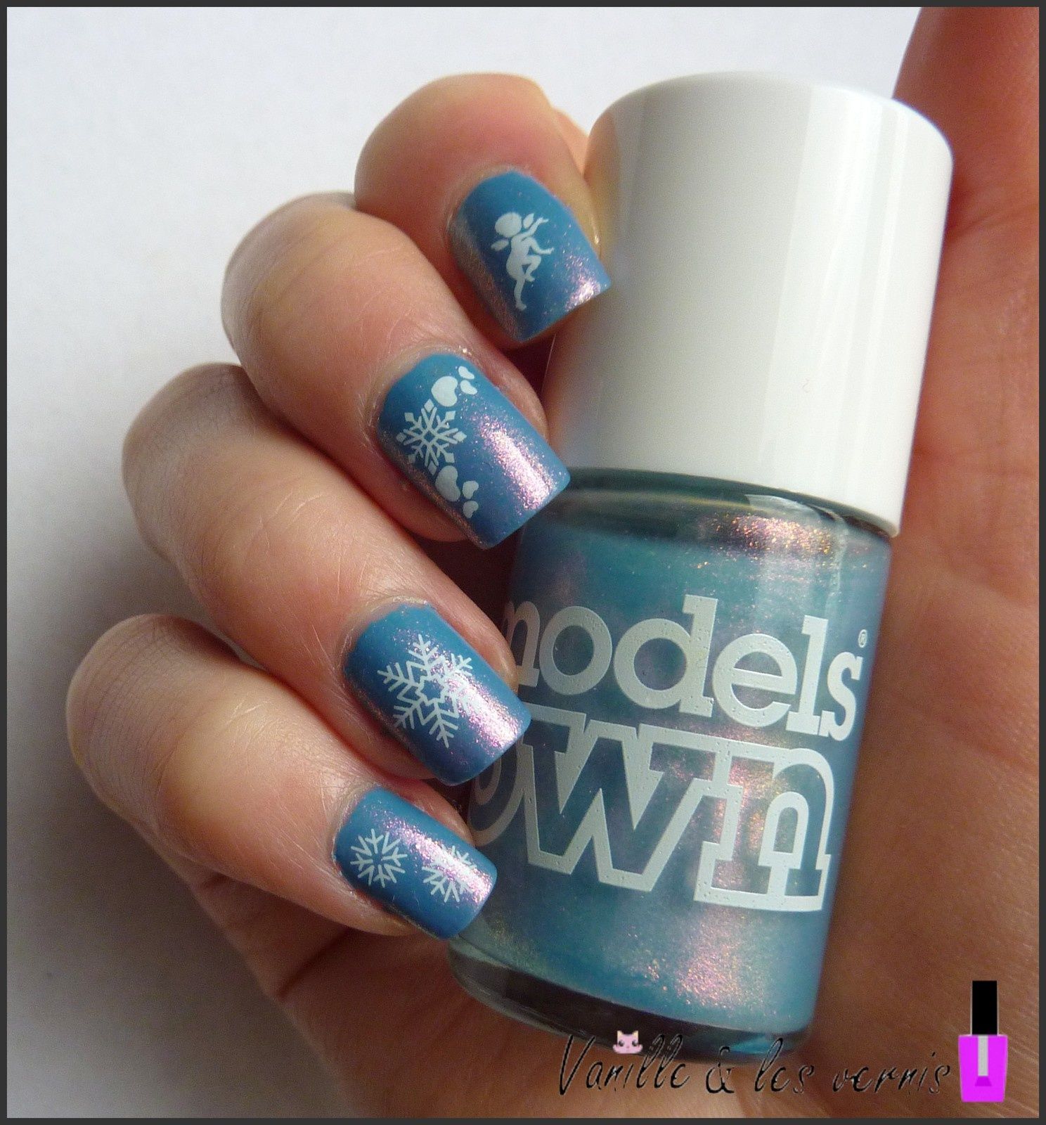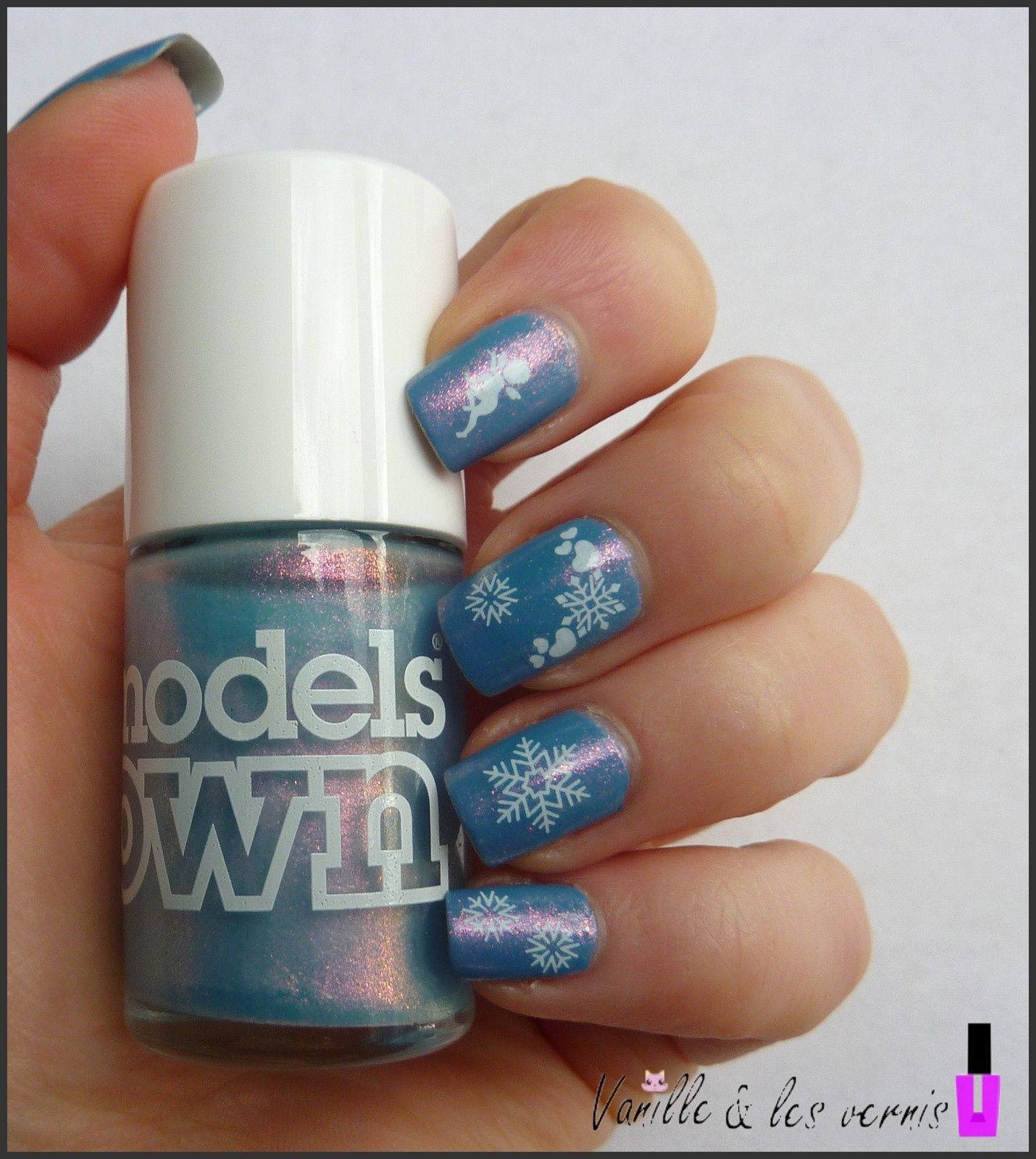 pour ce Nail art j'ai utilisé en base un joli bleu: Denim Blue des Clubs Créateur de Beauté, posé en une couche, puis j'ai ajouté une couche de Indian Océan de Model Own, acheté chez Bec et Ongles, un vernis de recouvrement bleu irisé rose, trés liquide
