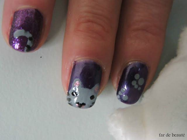 la semaine dernière c’était mon anniversaire, et j'ai eus un magnifique cadeau de la part de mes blopines : un joli complot rien que pour moi!!! <3 mes copines de blog ont réalisées un magnifique nail art, sur le thème violet et chat!!!! trop bien trouvé les filles!!! i'm so happy!!!!