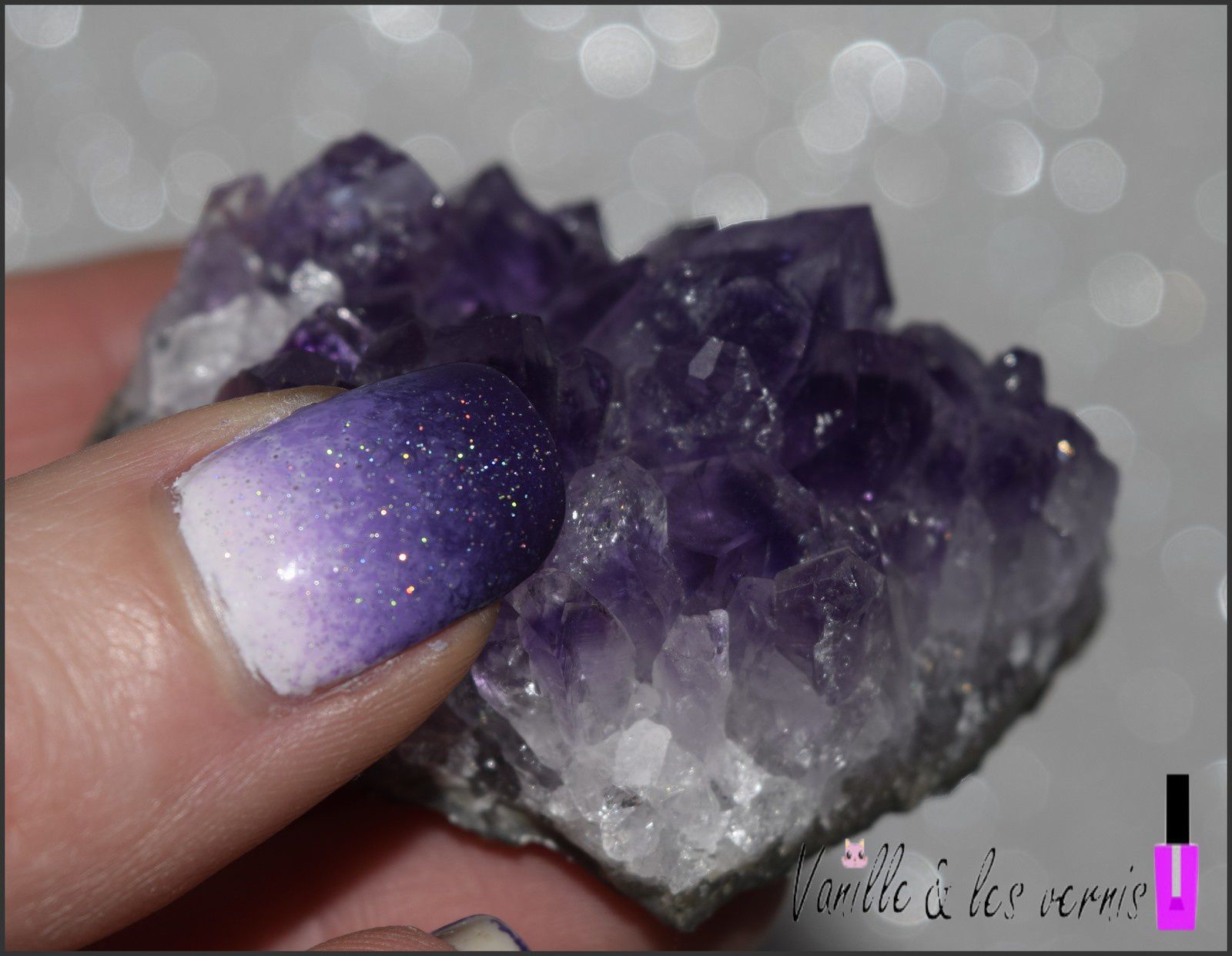 vous avez dû vous en apercevoir, je suis une grande fan de pierres naturelles, et le nail art d'aujourd'hui s'inspire directement de l'une d'elles que j'aime particulièrement : l'améthyste!!
